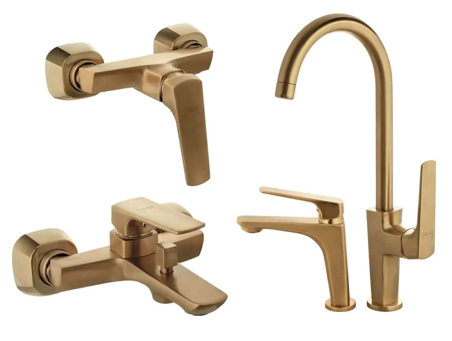 این ست شیرآلات شامل شیر ظرفشویی، شیر روشویی، شیر توالت و شیر حمام میباشد |