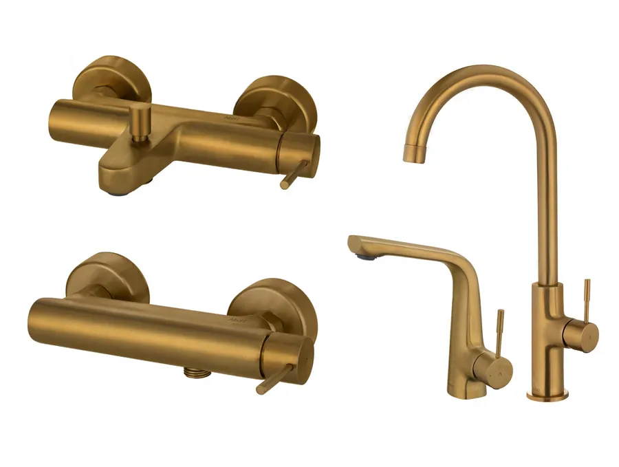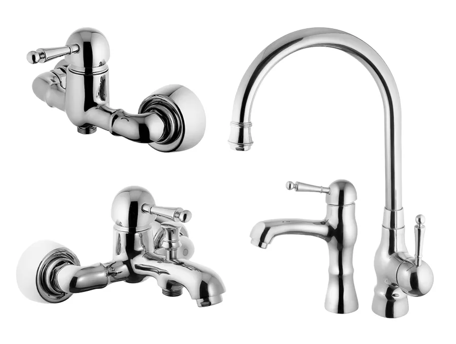 این ست شیرآلات شامل شیر ظرفشویی، شیر روشویی، شیر توالت و شیر حمام میباشد |